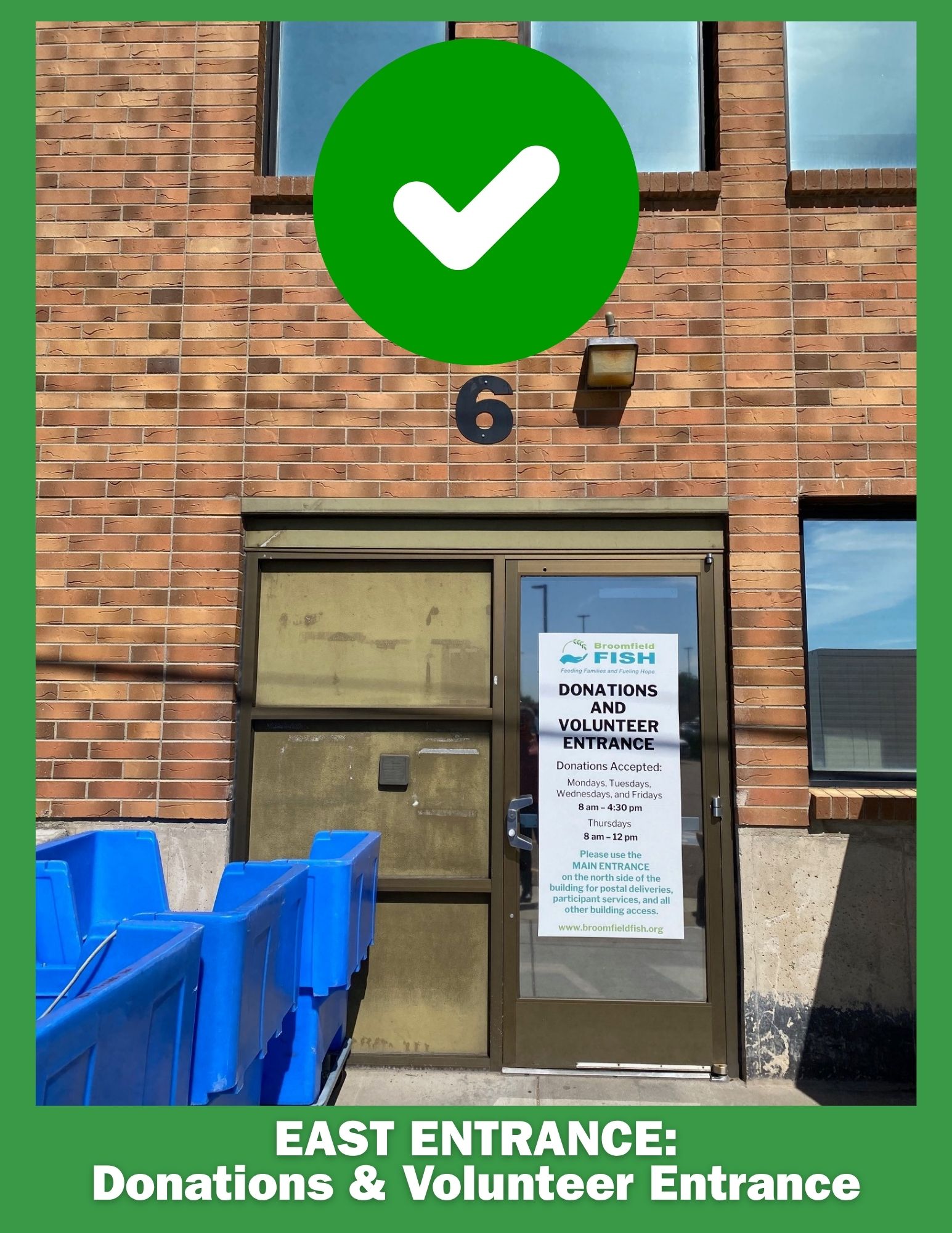 - Drop-Off: Bring food and personal care donations to our EAST SIDE door during receiving hours. 📍Our address is 6 Garden Center, Broomfield, CO, 80020.